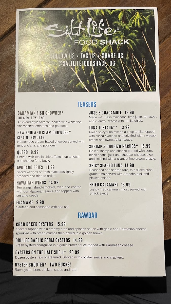 Salt Life Food Shack Menu